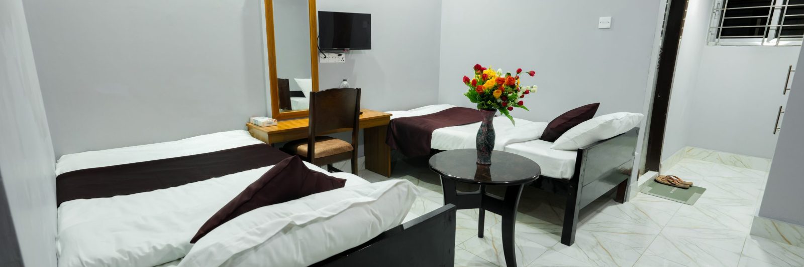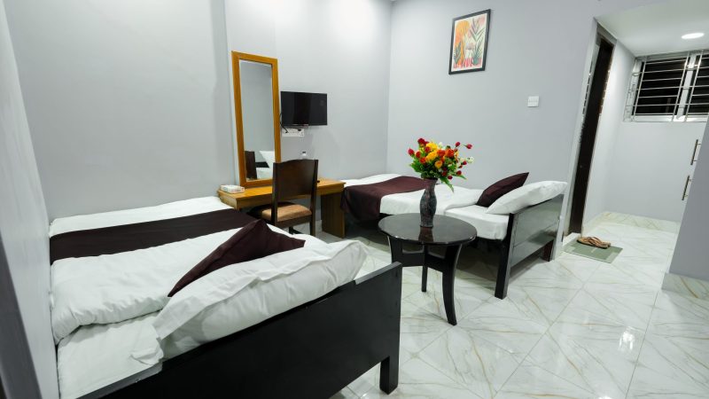 Our Standard Twin Room (Non-AC) is perfect for friends or colleagues traveling together. This room features two comfortable single beds, a clean and tidy layout, and essential amenities to make your stay pleasant and hassle-free.